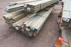 PACK TREATED PINE MIXED SIZES, 90mm x 35mm, 120mm x 35mm, 90mm x 35mm, APPROX 26pcs, LENGTHS 3M - 7.2M (SOME NAIL PLATE)